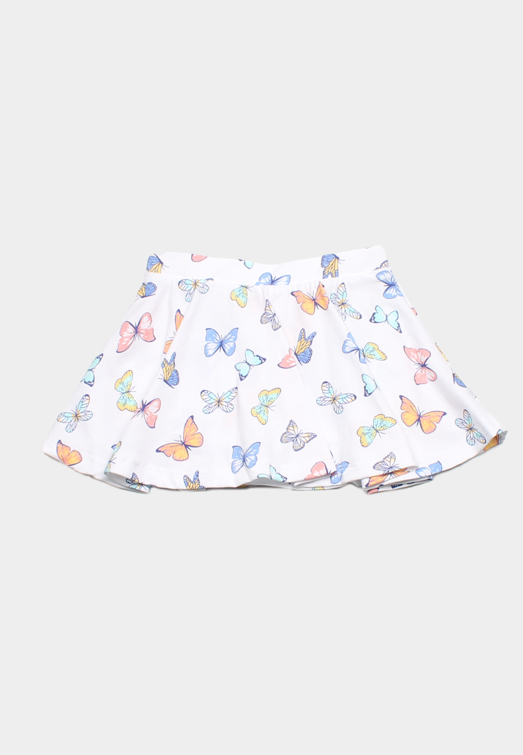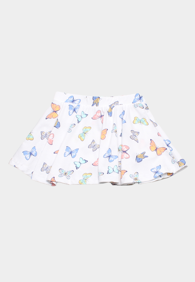 Butterly Prints Girl's Skirt WHITE
