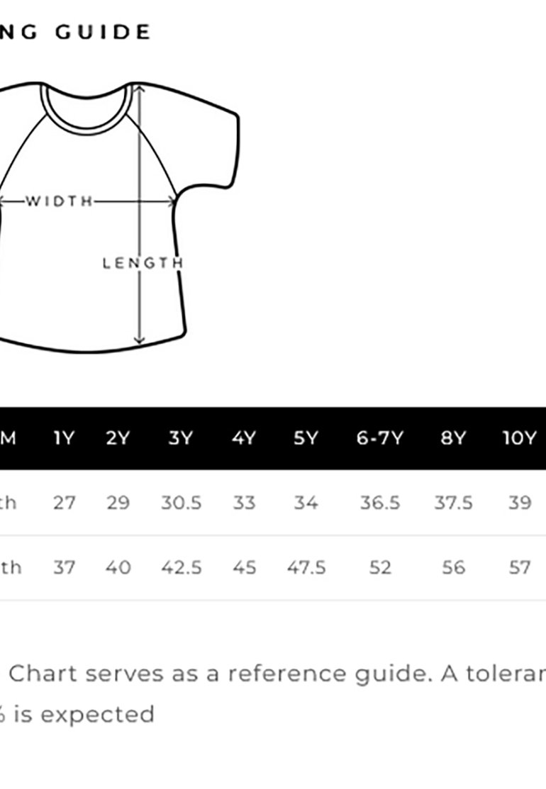 * Size Chart serves as a reference guide. A tolerance of +/- 3% is expected