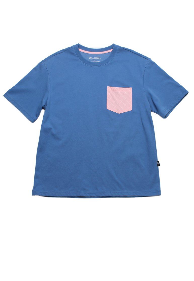 Checkered Pocket Premium Heavyweight Men's Oversized T-Shirt BLUE