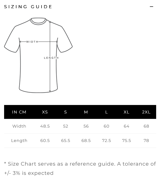 * Size Chart serves as a reference guide. A tolerance of +/- 3% is expected