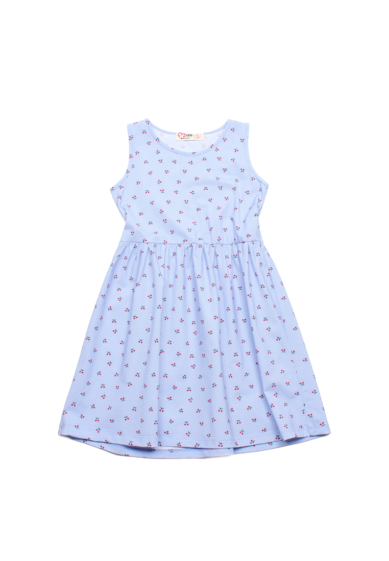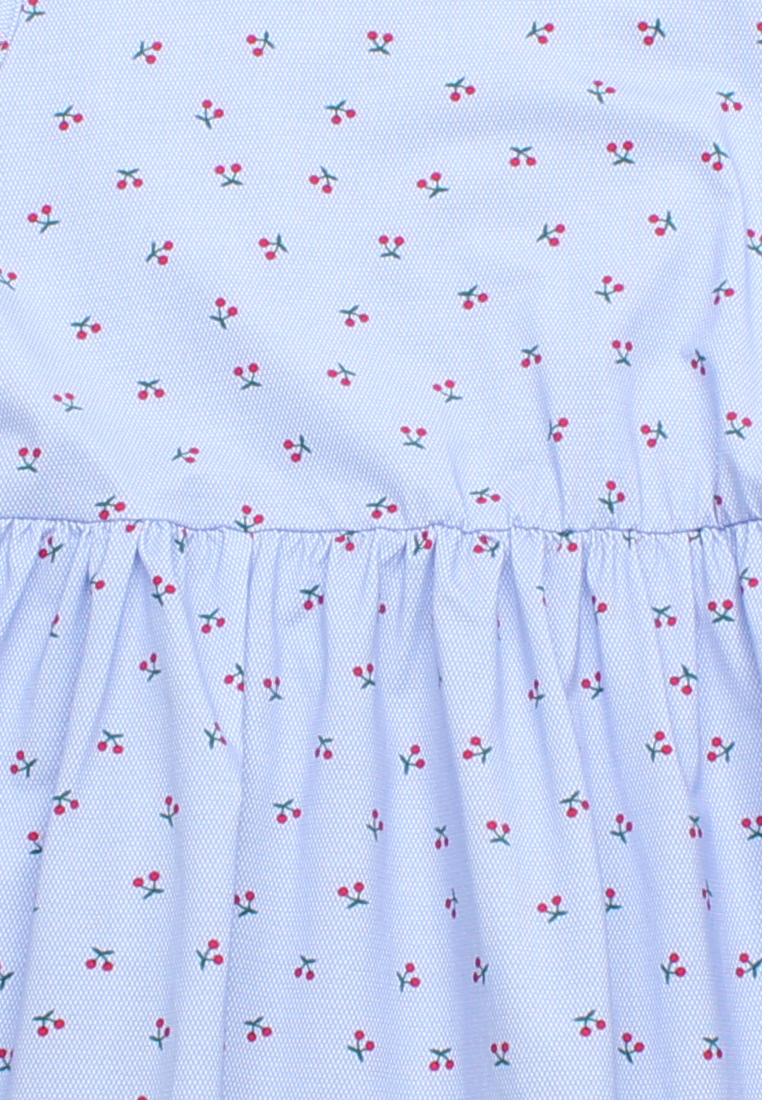 - 95% cotton 5% spandex one-piece dress with cherries print.