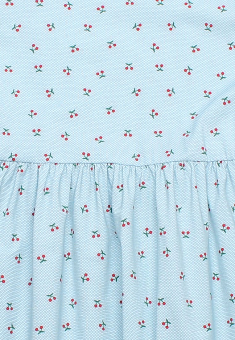 - 95% cotton 5% spandex one-piece dress with cherries print.