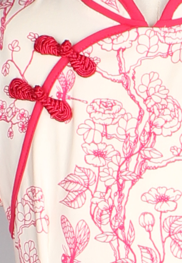 Chinoiserie Prints Cheongsam Inspired Girl's Dress CREAM