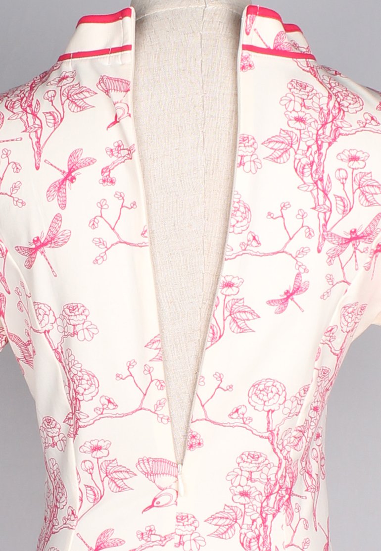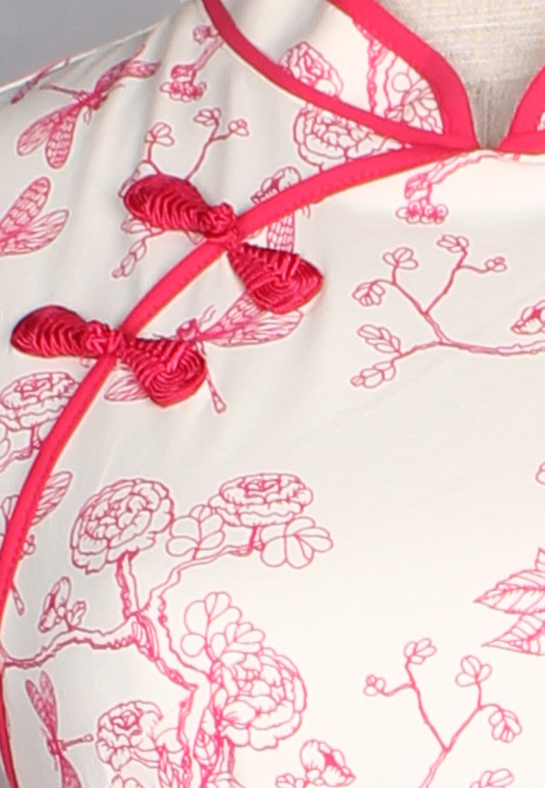 Chinoiserie Prints Cheongsam Inspired Ladies' Dress CREAM