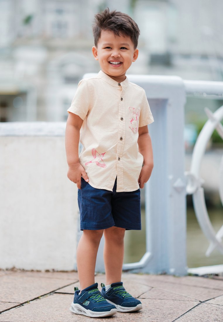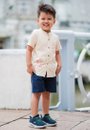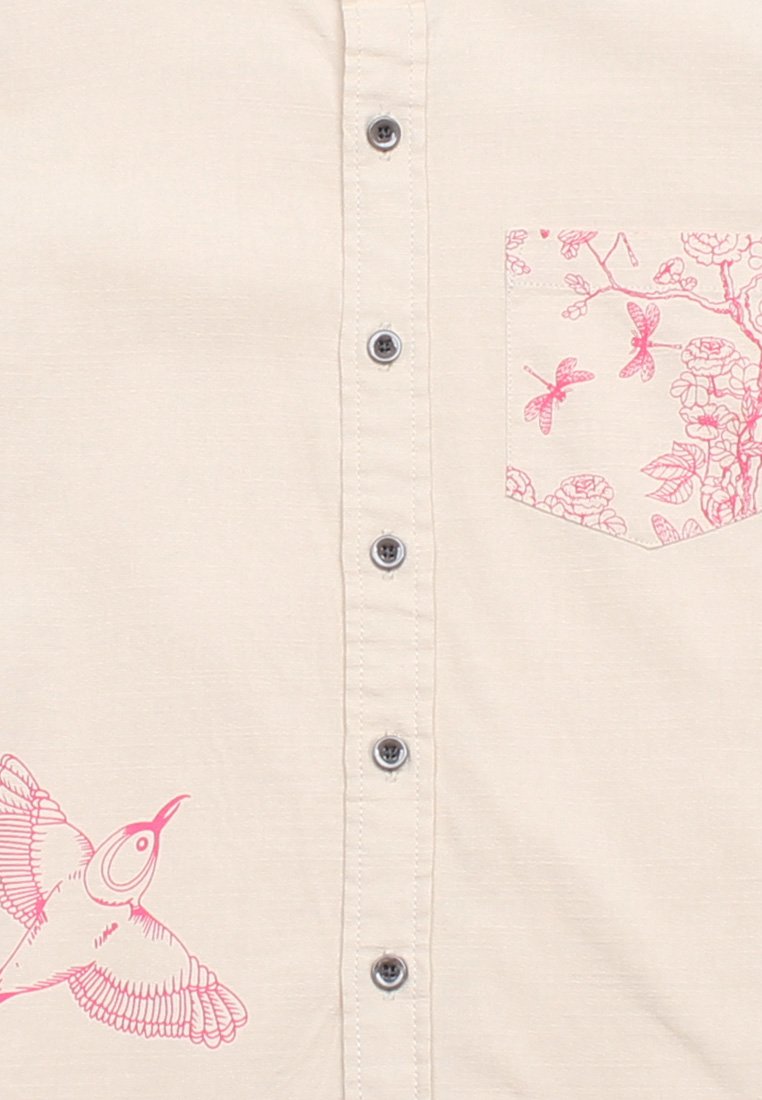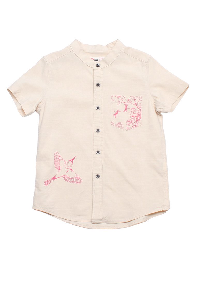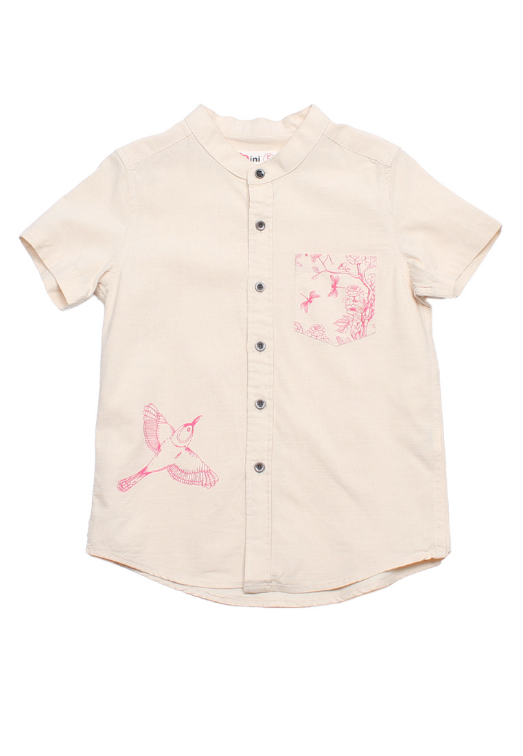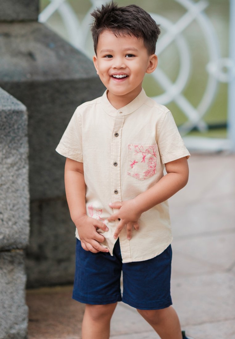 Chinoiserie Prints Mandarin Collar Short Sleeve Boy's Shirt CREAM