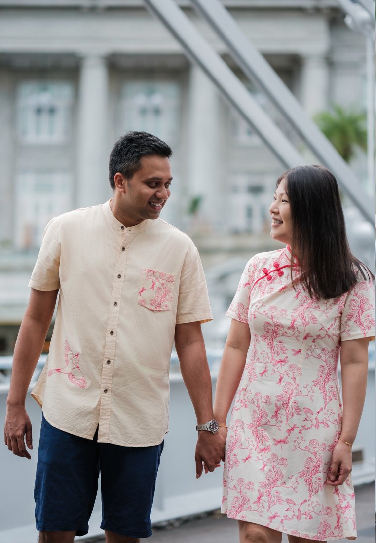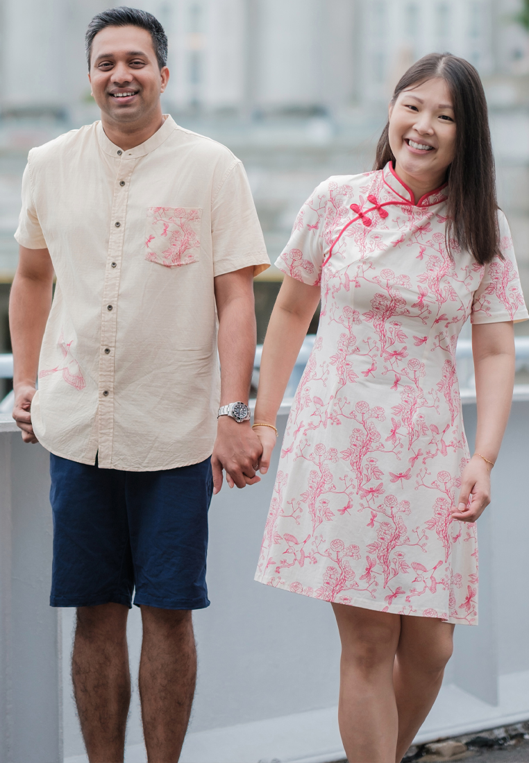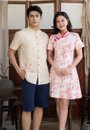 - 100% Brushed cotton twill mandarin collar short sleeve shirt with Chinoiserie prints on pocket and side.