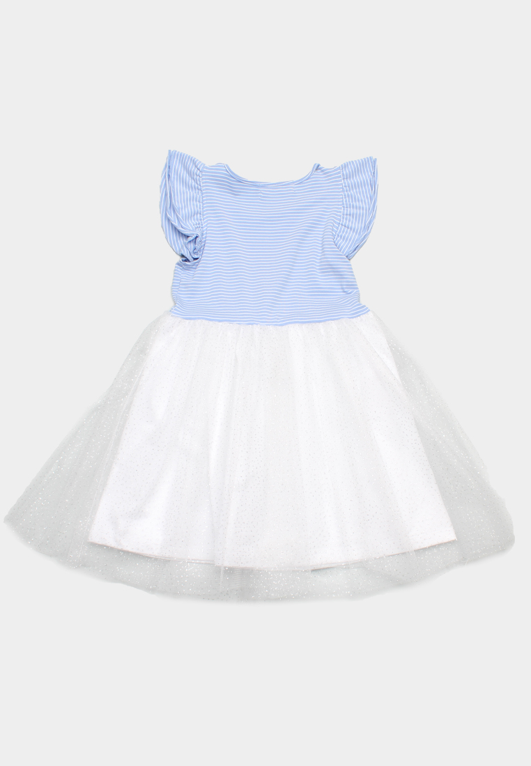 - 95% cotton 5% spandex one-piece dress with stripe design and glitter tulle.