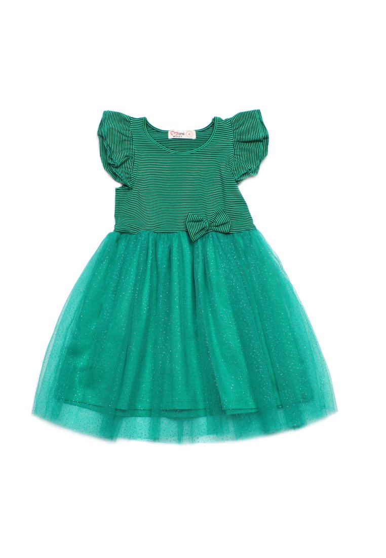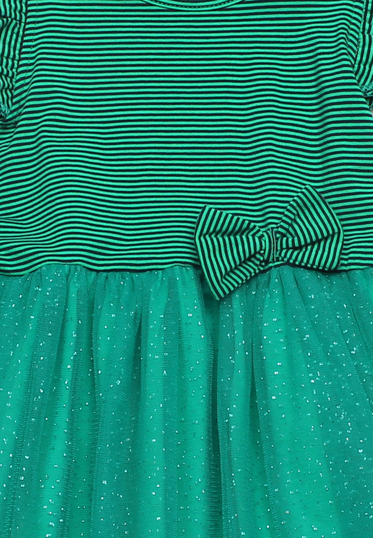 Classic Stripe Tulle Girl's Bubble Dress GREEN