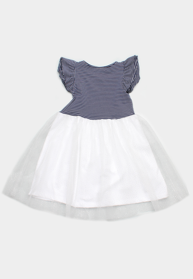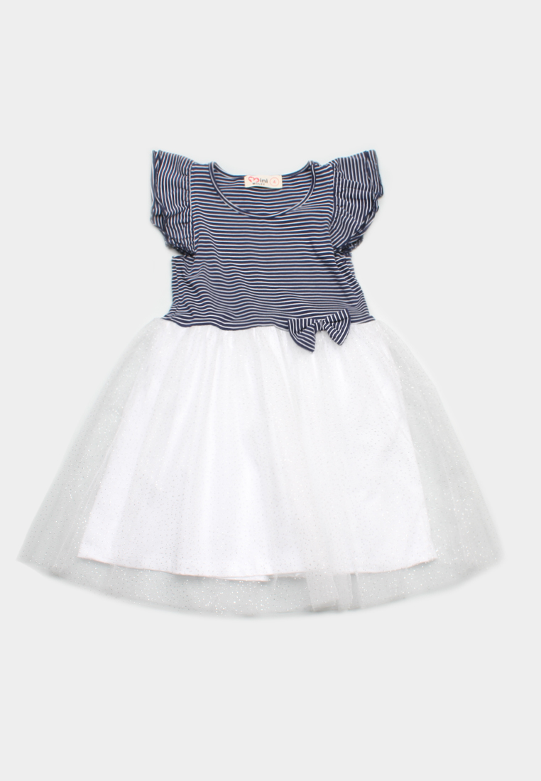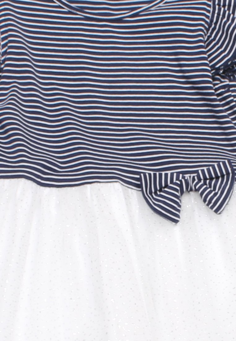- 95% cotton 5% spandex one-piece dress with stripe design and glitter tulle.
