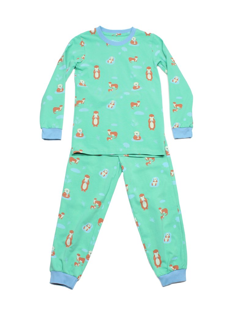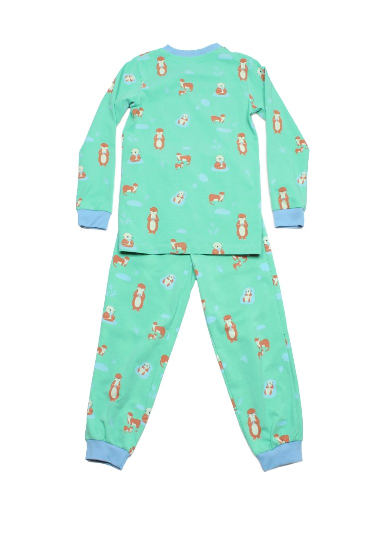 - 95% cotton 5% spandex long sleeves pyjamas top + pants set with otter printing.