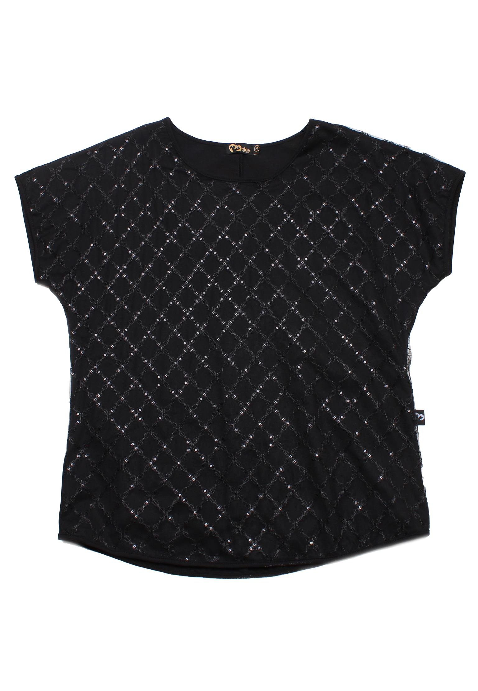- 94% cotton 6% spandex blouse with sequined diamond mesh design.