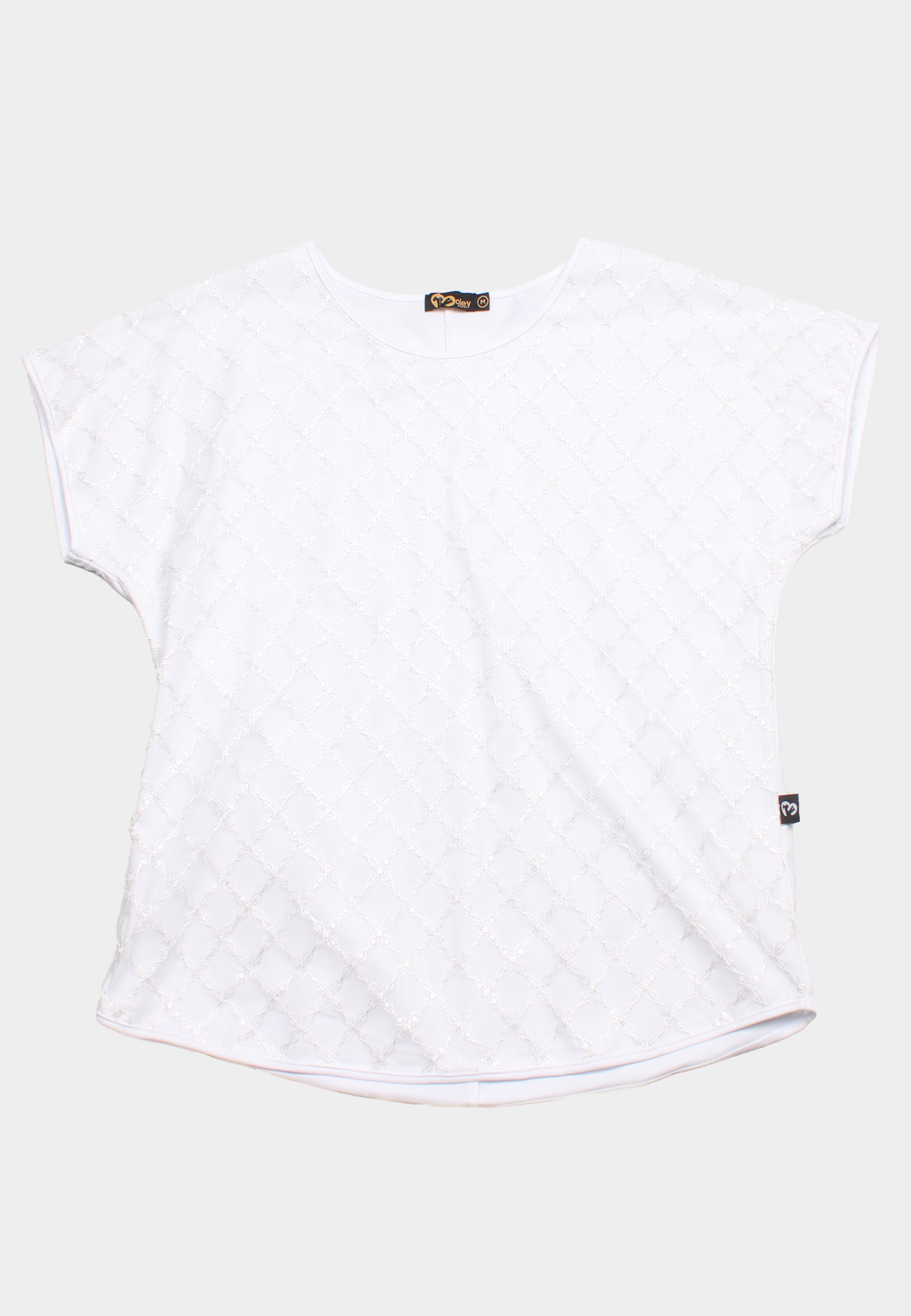 - 94% cotton 6% spandex blouse with sequined diamond mesh design.