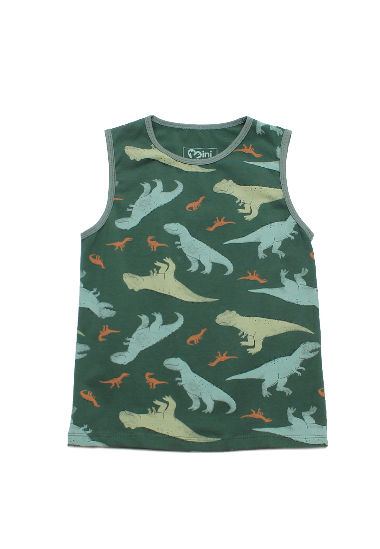 - 95% Premium cotton and 5% spandex singlet with dino prints.