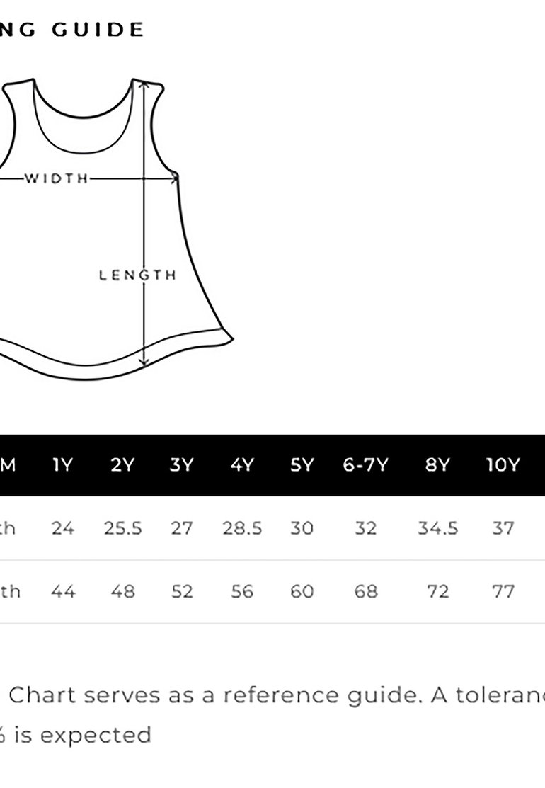 * Size Chart serves as a reference guide. A tolerance of +/- 3% is expected