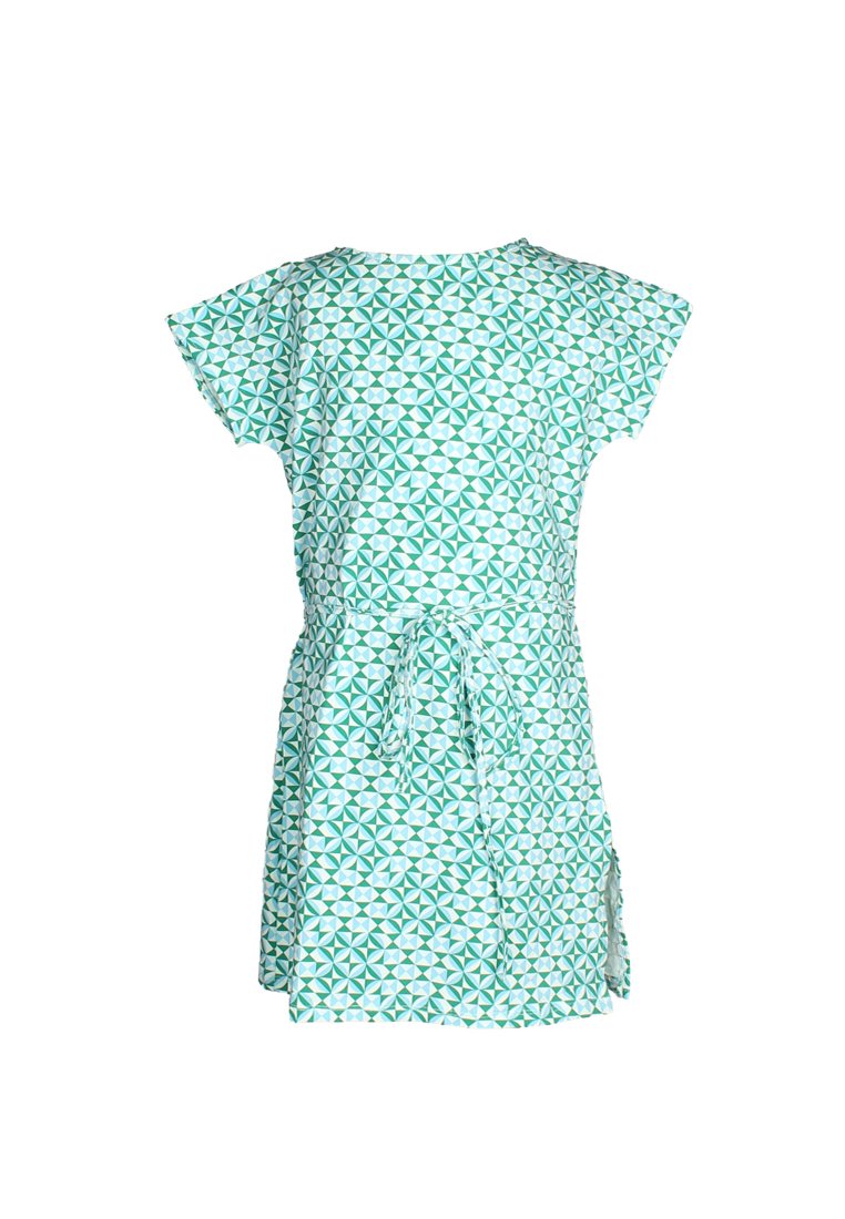 Geometric Tiles Print Girl's Dress GREEN
