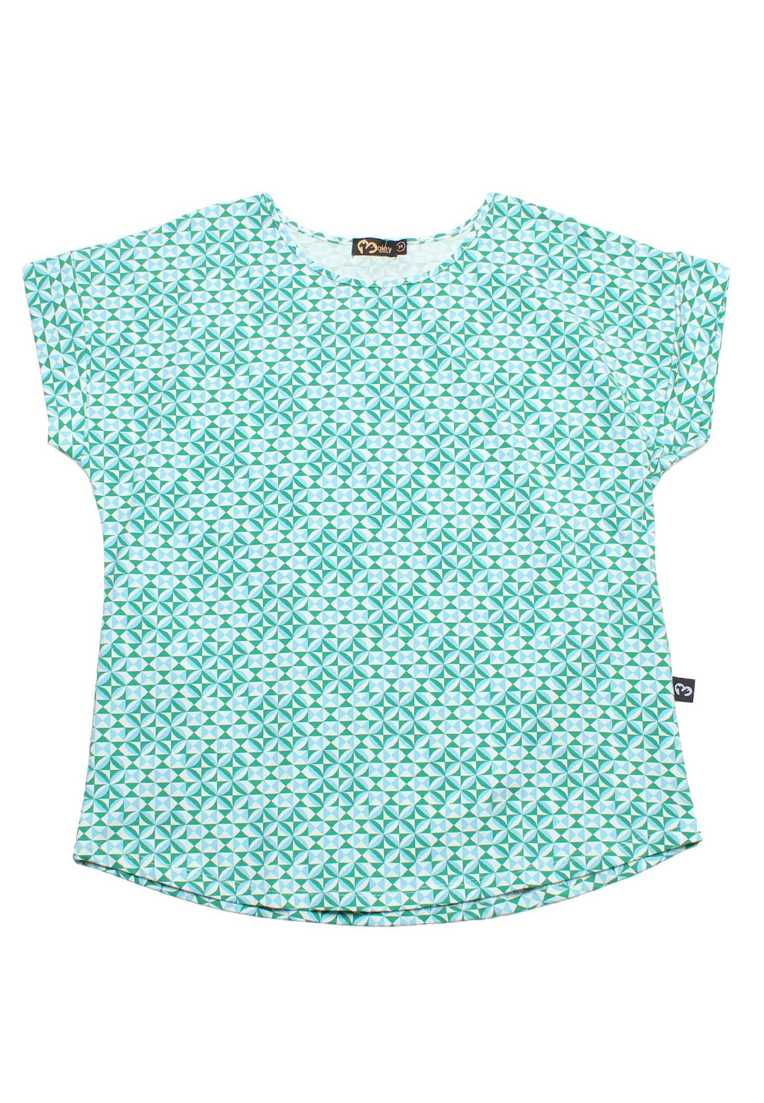 - 94% cotton 6% spandex blouse with geometric tiles prints.