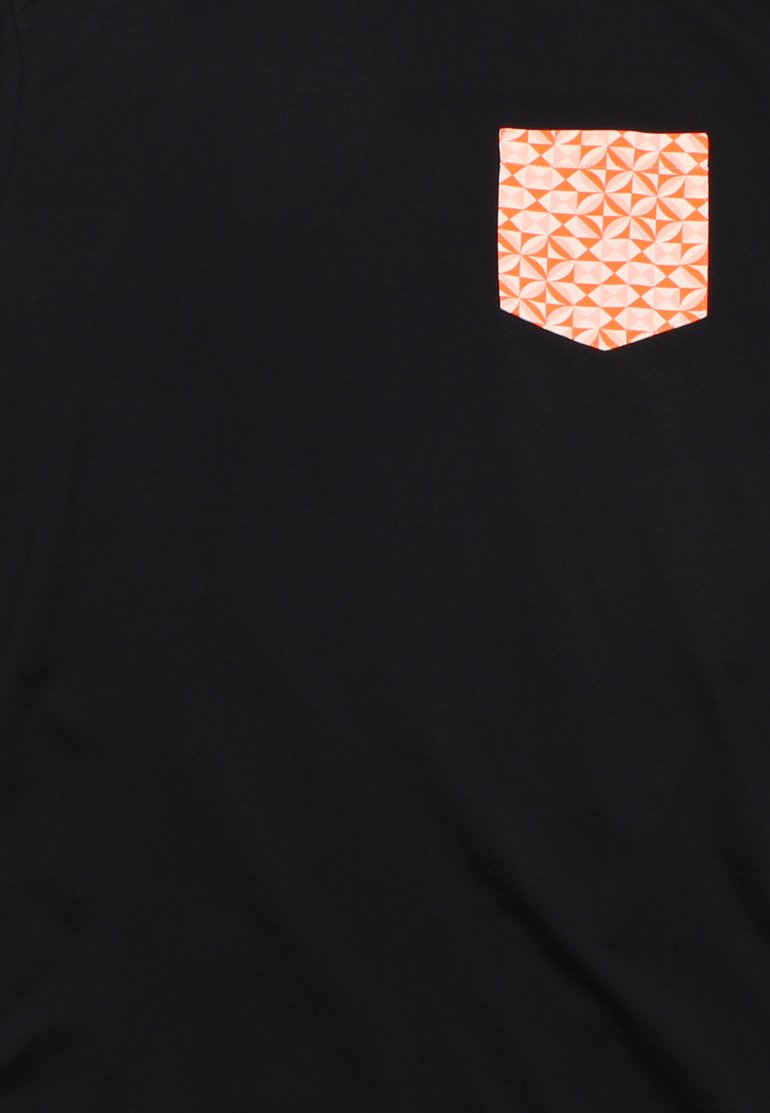 - 100% premium cotton black T-shirt with geometric tiles design pocket and back shoulder panel.