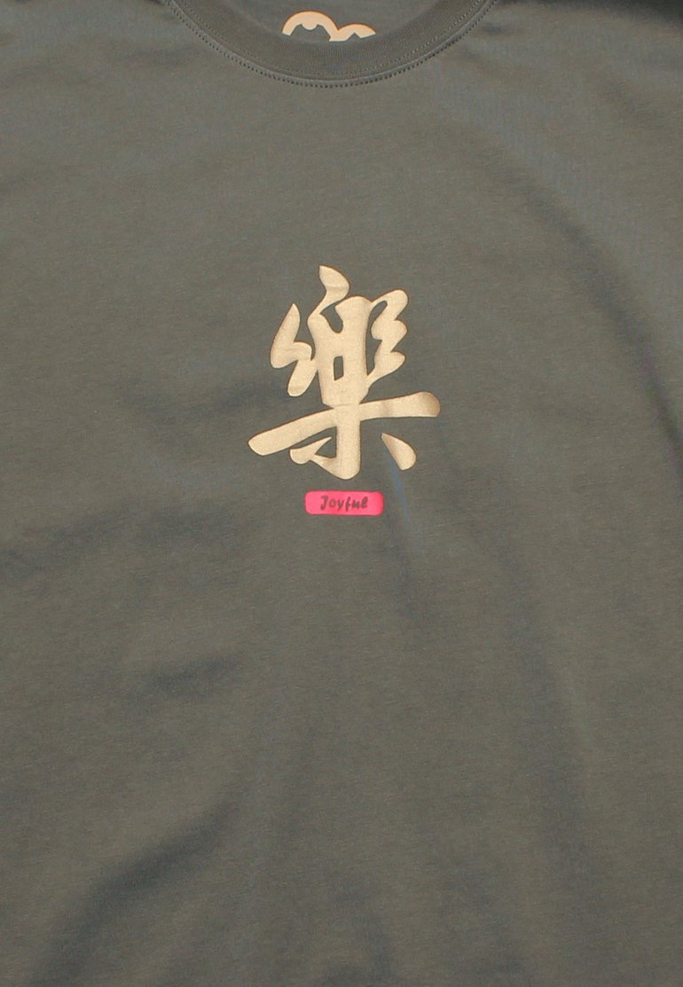 - 100% premium cotton grey T-shirt with calligraphy print.