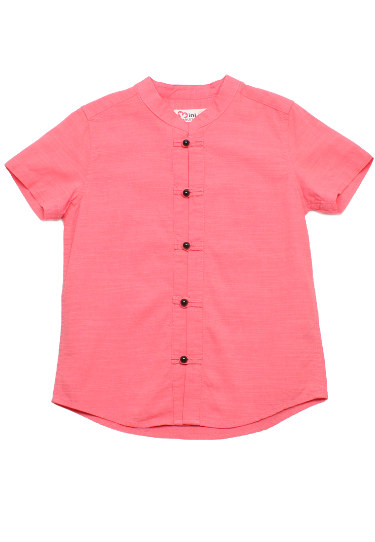 Oriental Linen Premium Mandarin Collar Short Sleeve Boy's Shirt RED