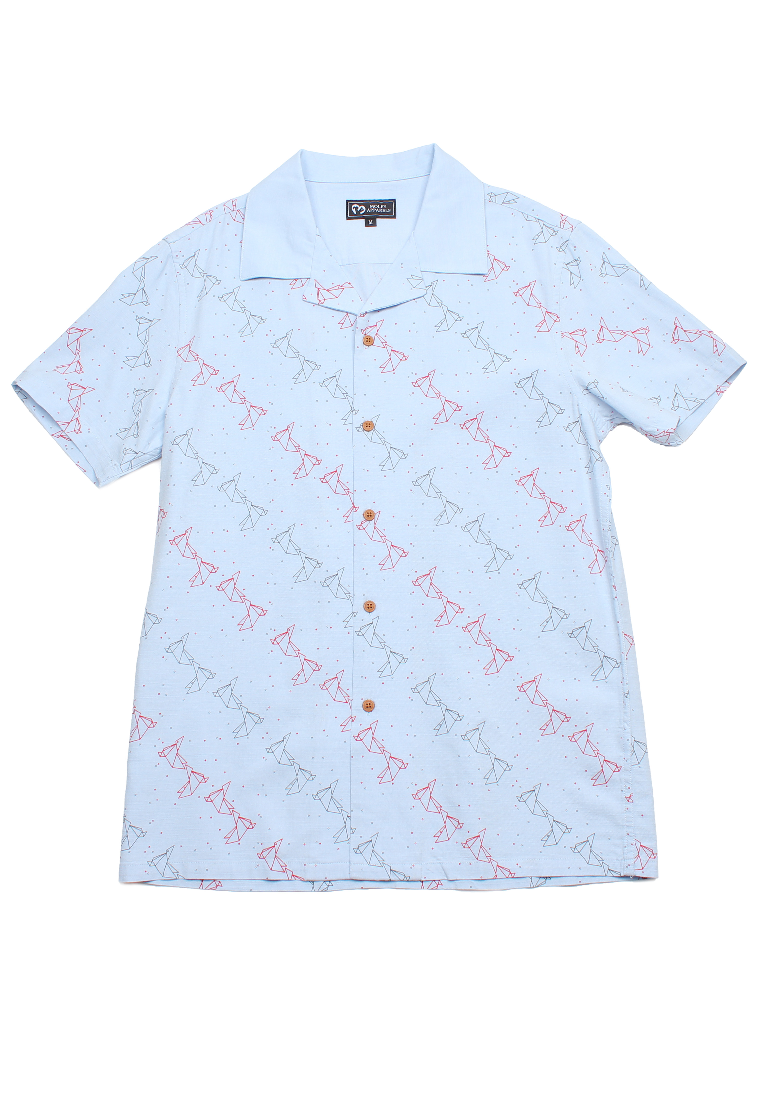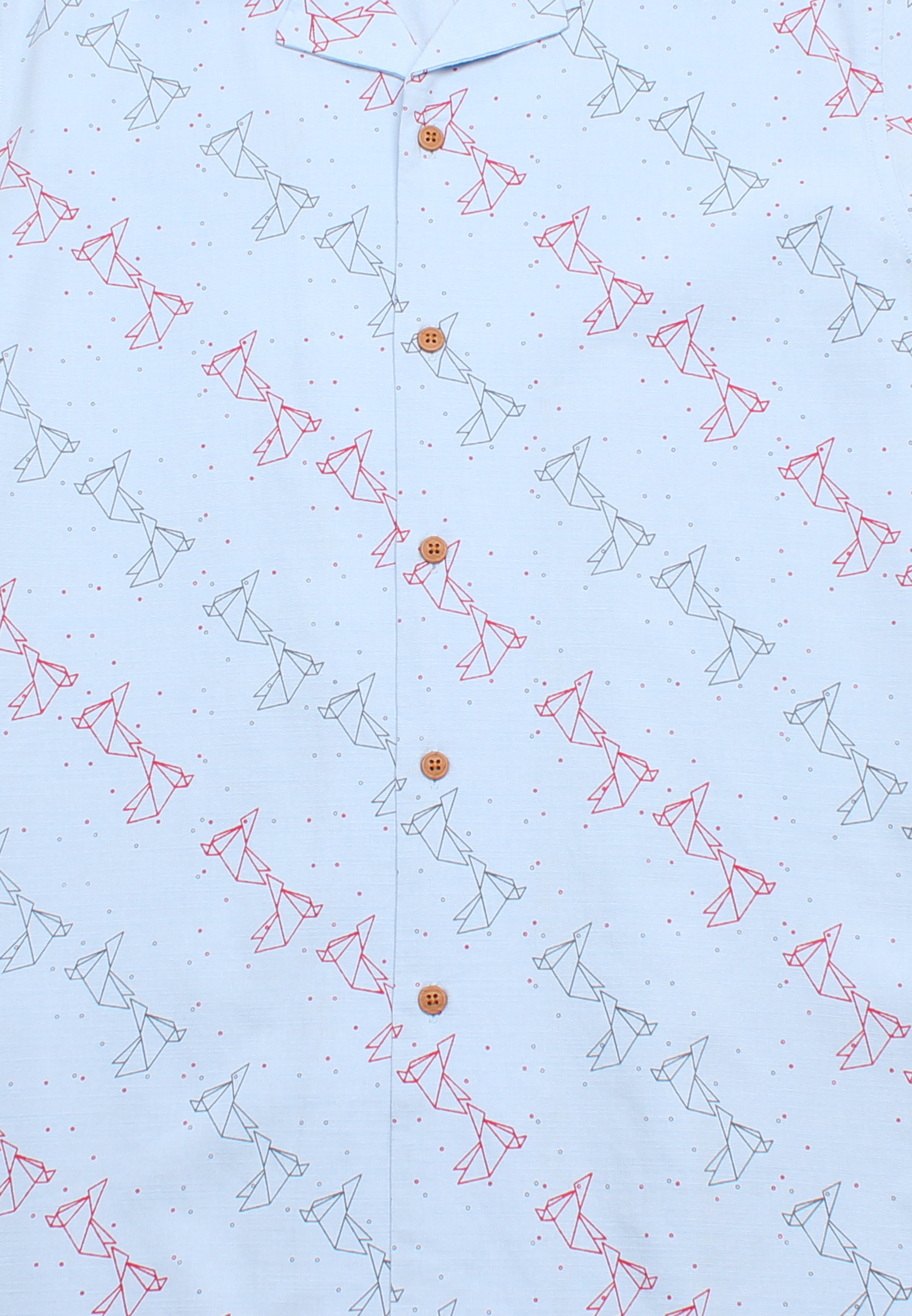 - 100% premium cotton short sleeve open collar shirt with origami bird print.
