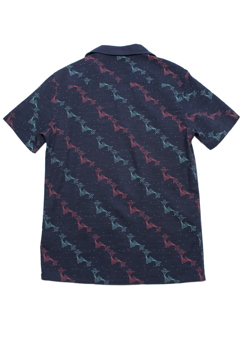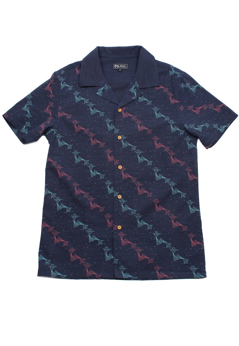 Origami Fish Short Sleeve Men's Open Collar Shirt NAVY