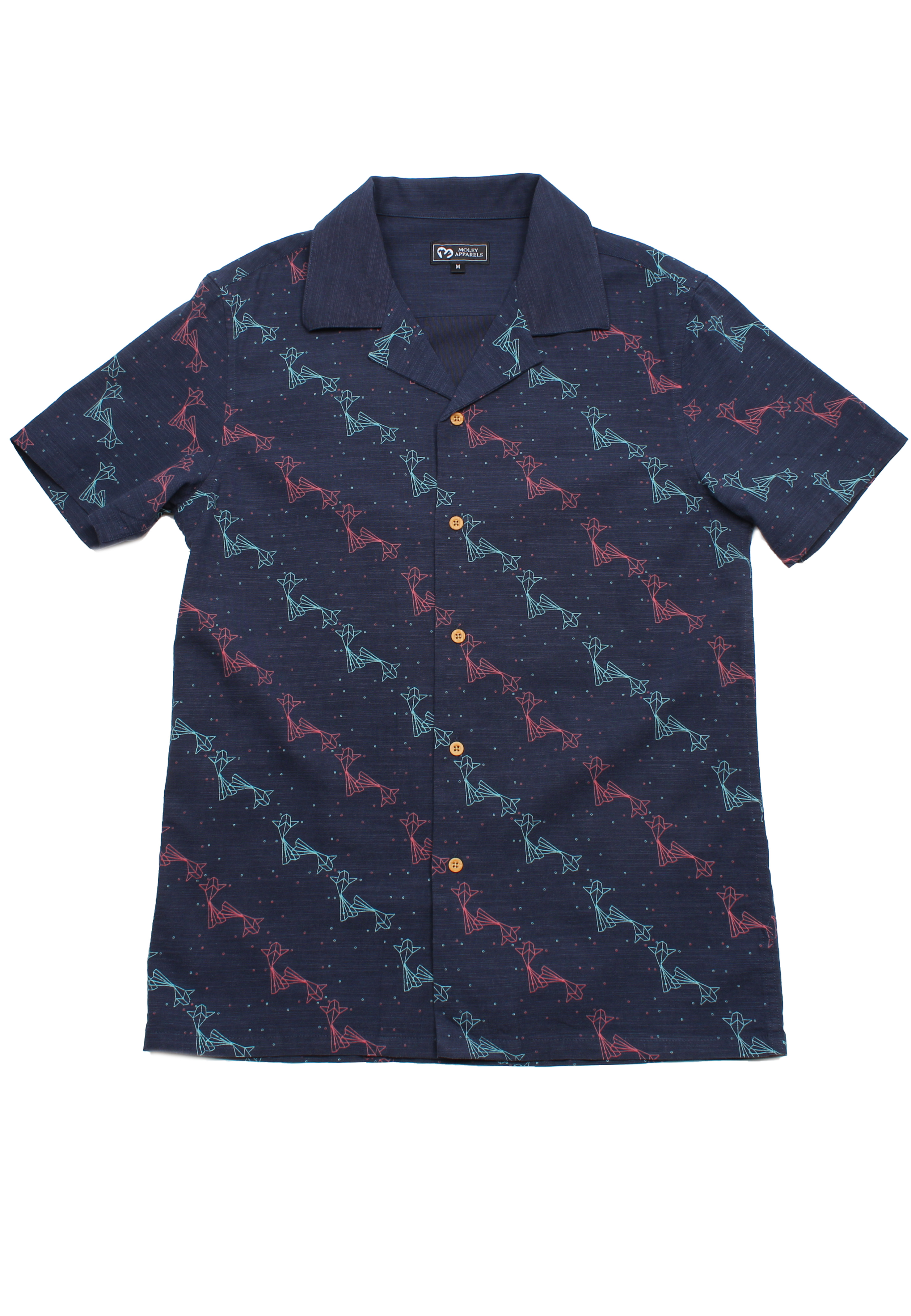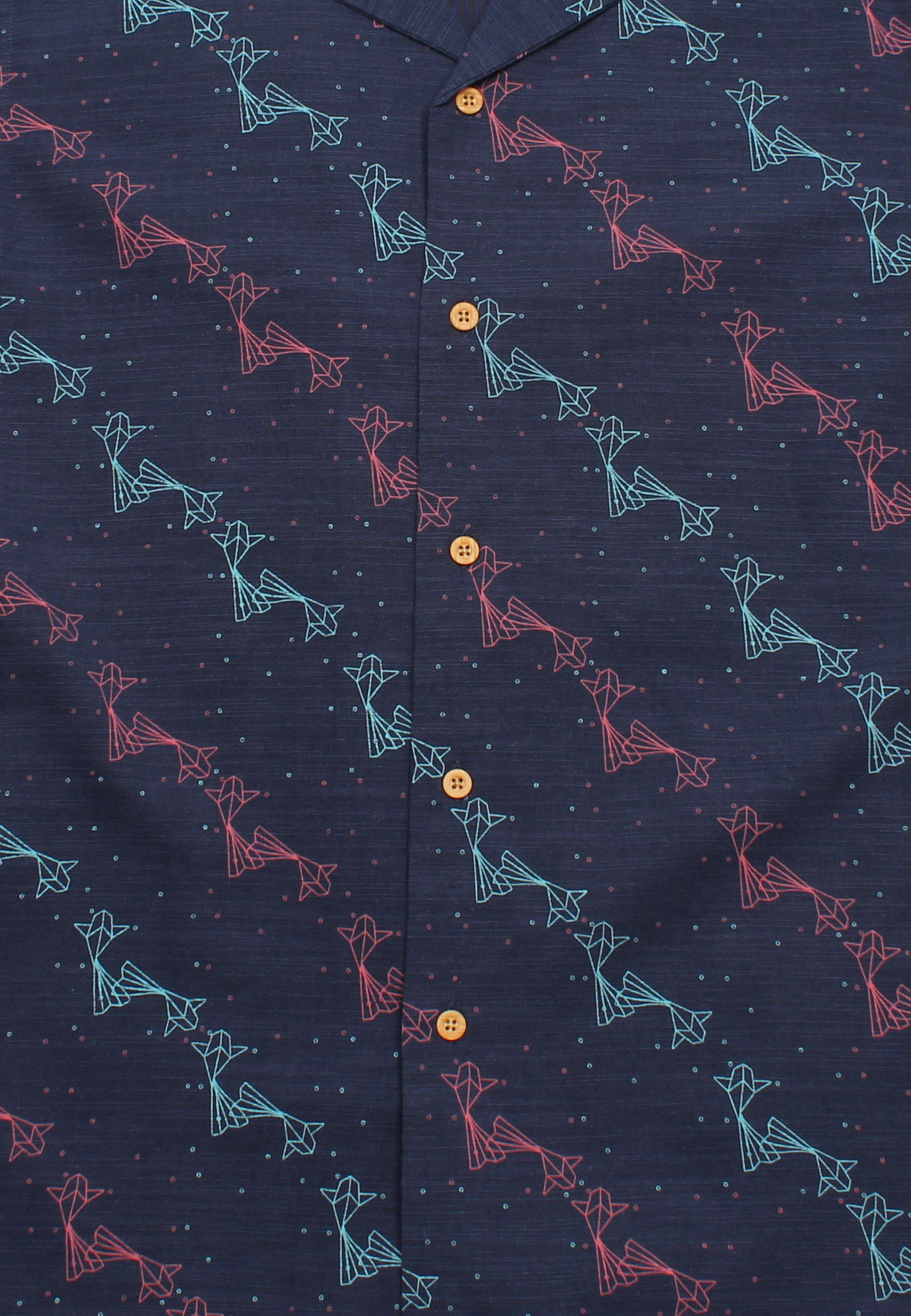 - 100% premium cotton short sleeve open collar shirt with origami fish print.