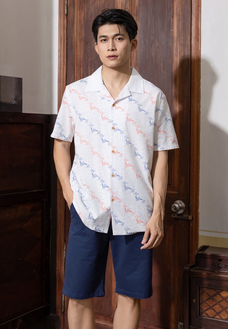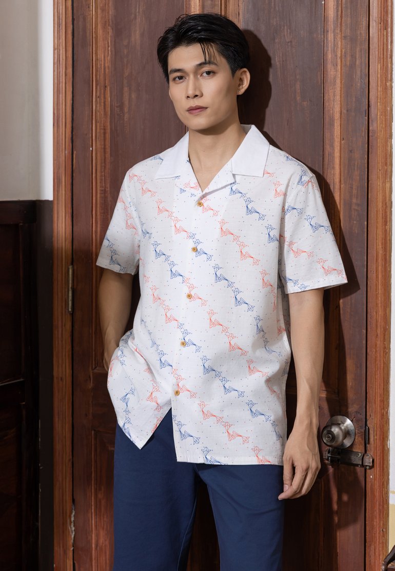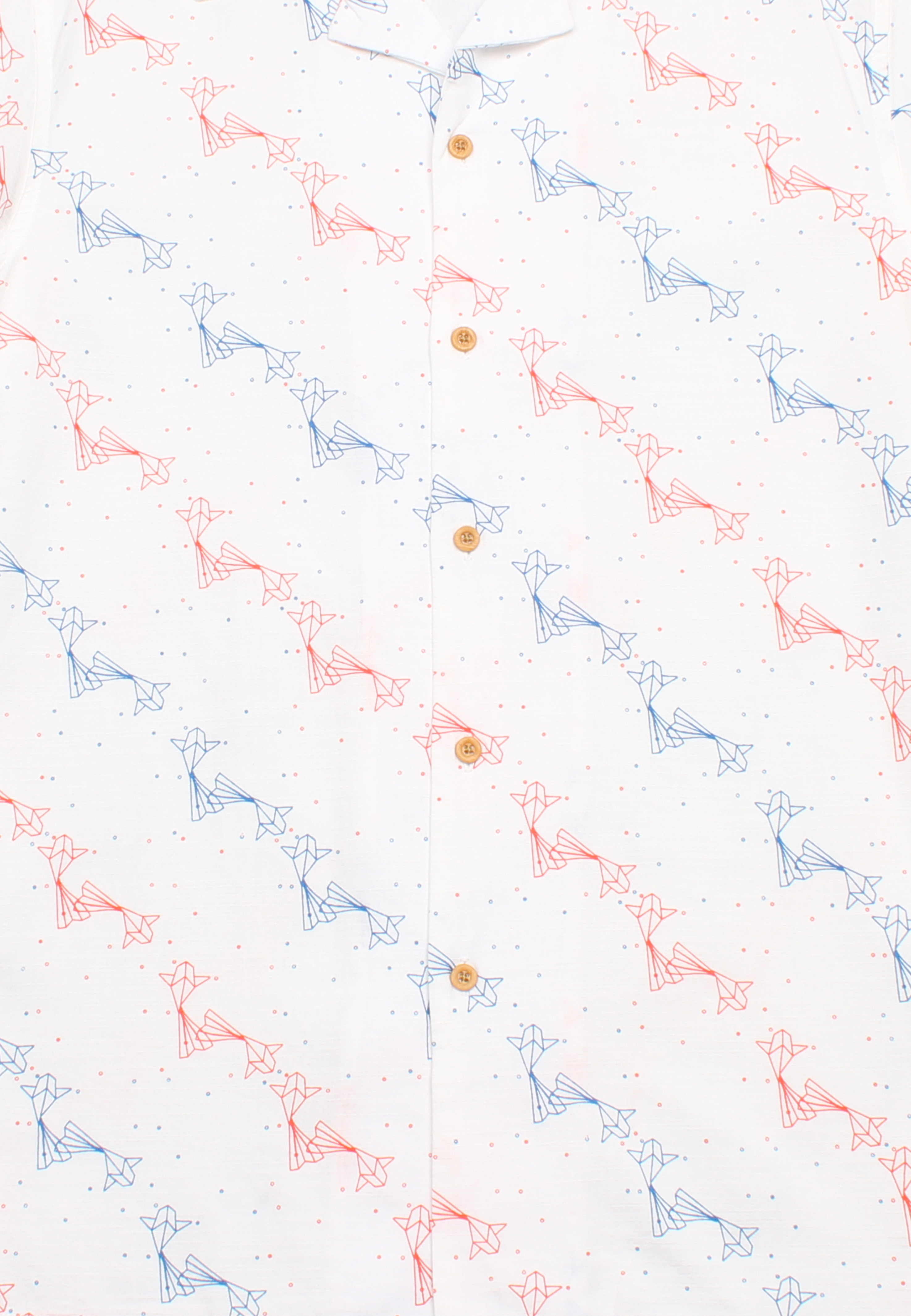 - 100% premium cotton short sleeve open collar shirt with origami fish print.