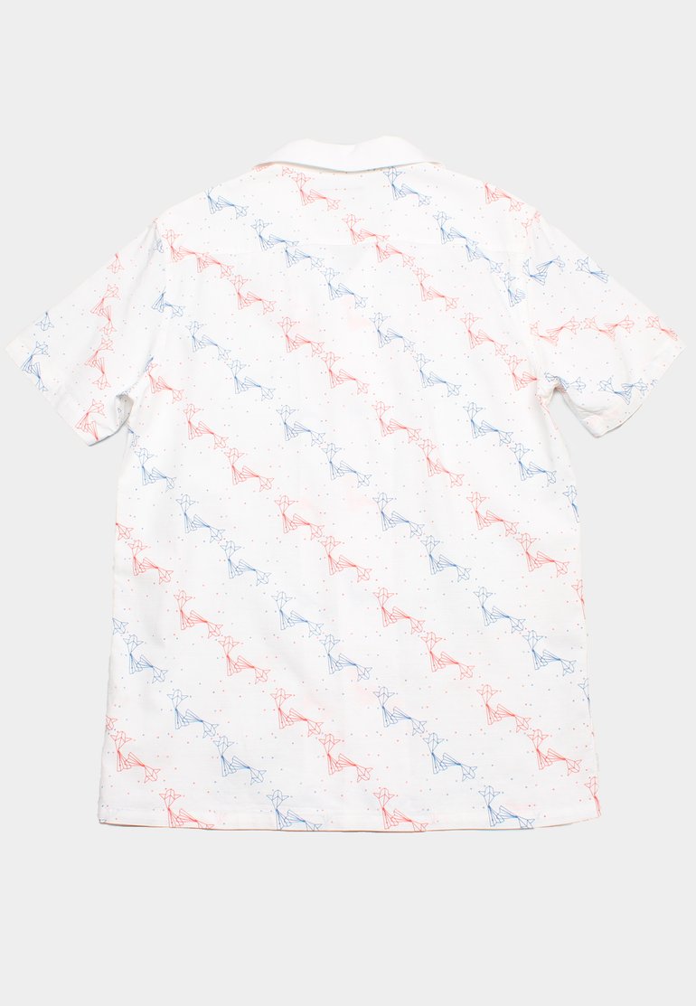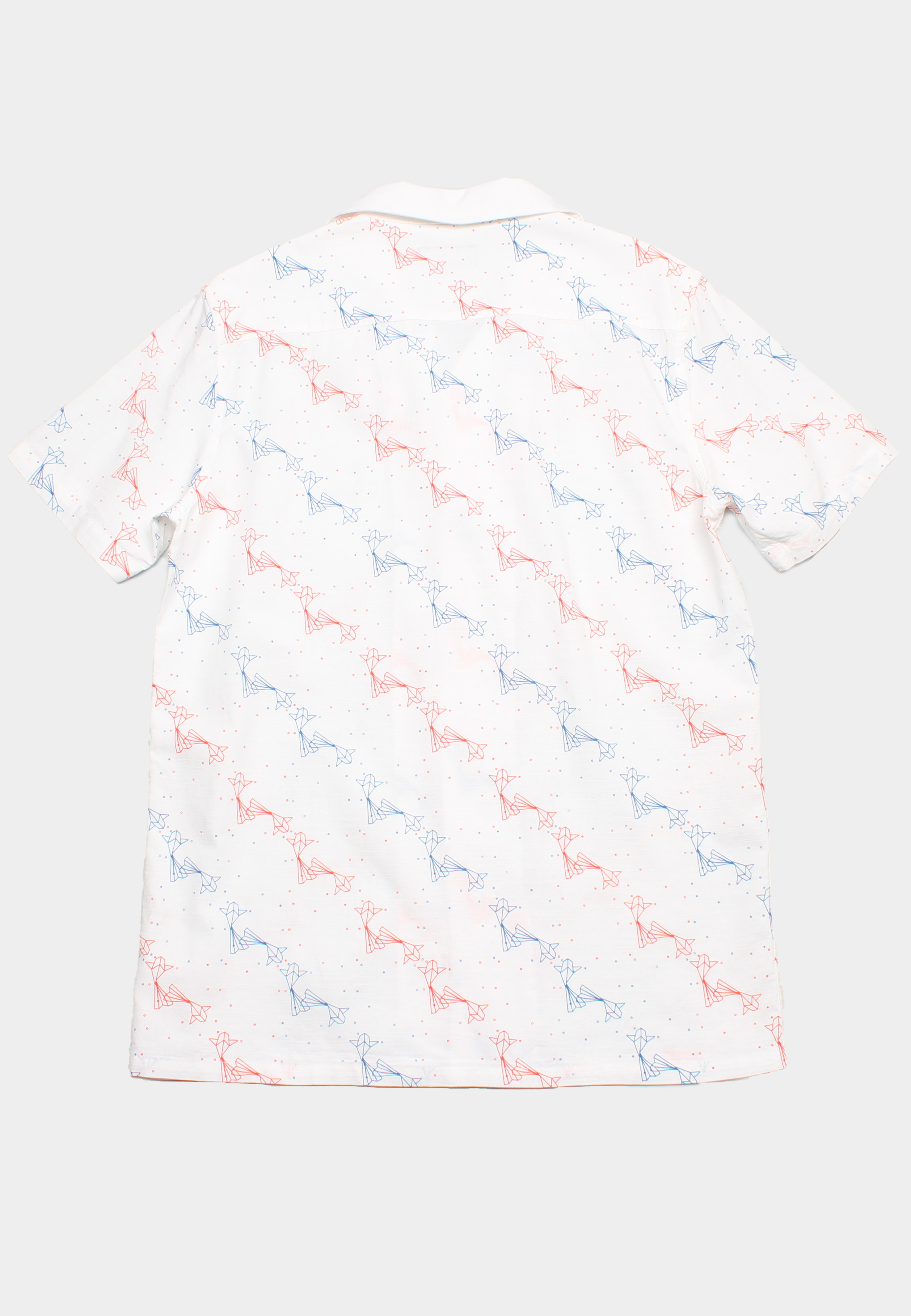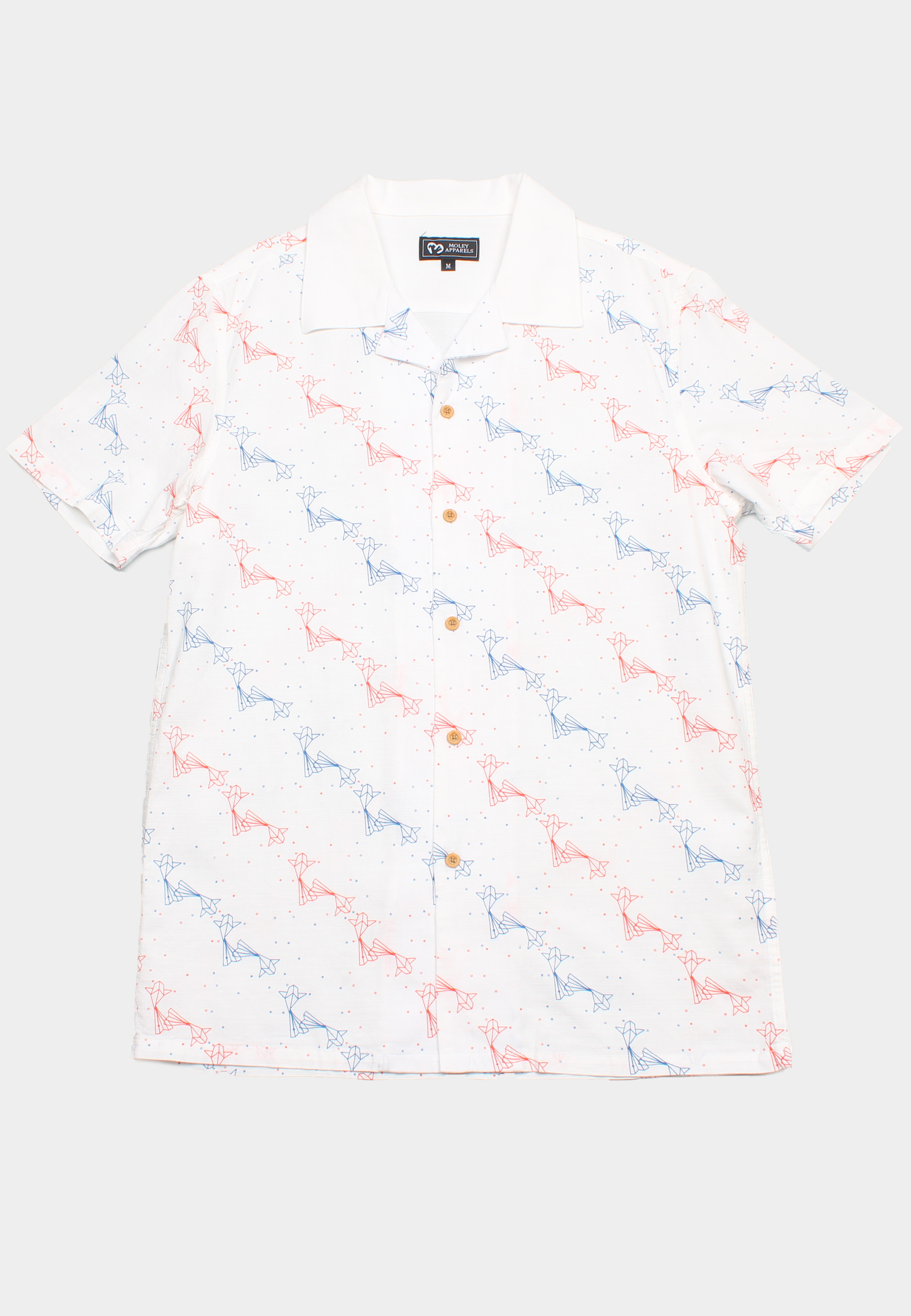 Origami Fish Short Sleeve Men's Open Collar Shirt WHITE