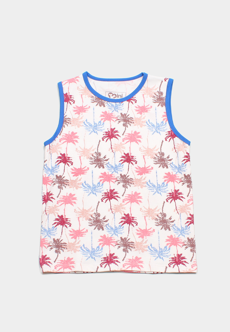 - 95% Premium cotton and 5% spandex singlet with palm trees print.
