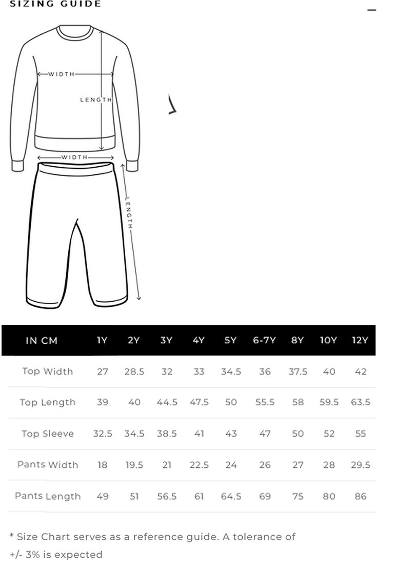 * Size Chart serves as a reference guide. A tolerance of +/- 3% is expected