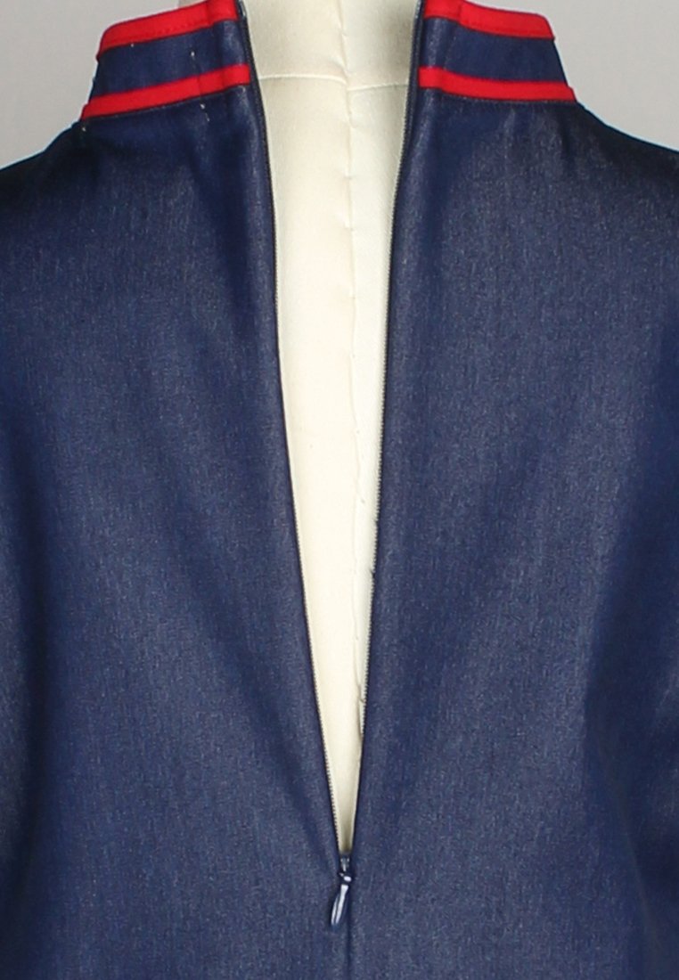 - 95% cotton 5% spandex mandarin collared cheongsam inspired dress with decorative buttons.