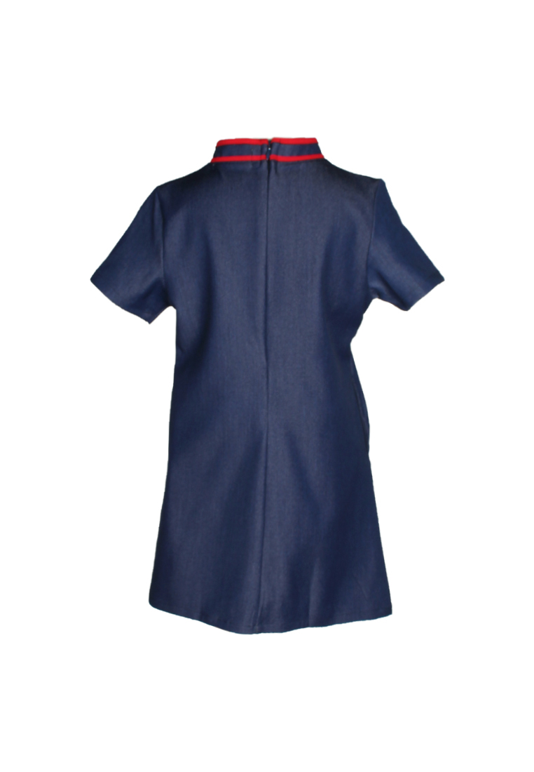 Sakura Embroidery Cheongsam Inspired Girl's Flare Dress NAVY