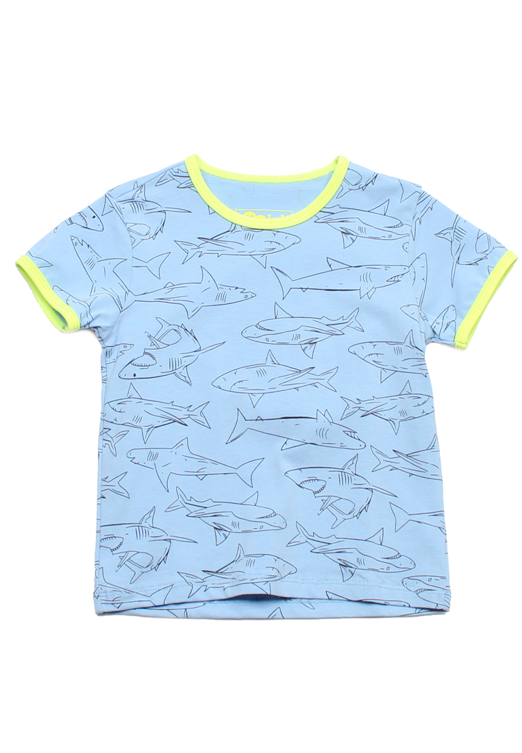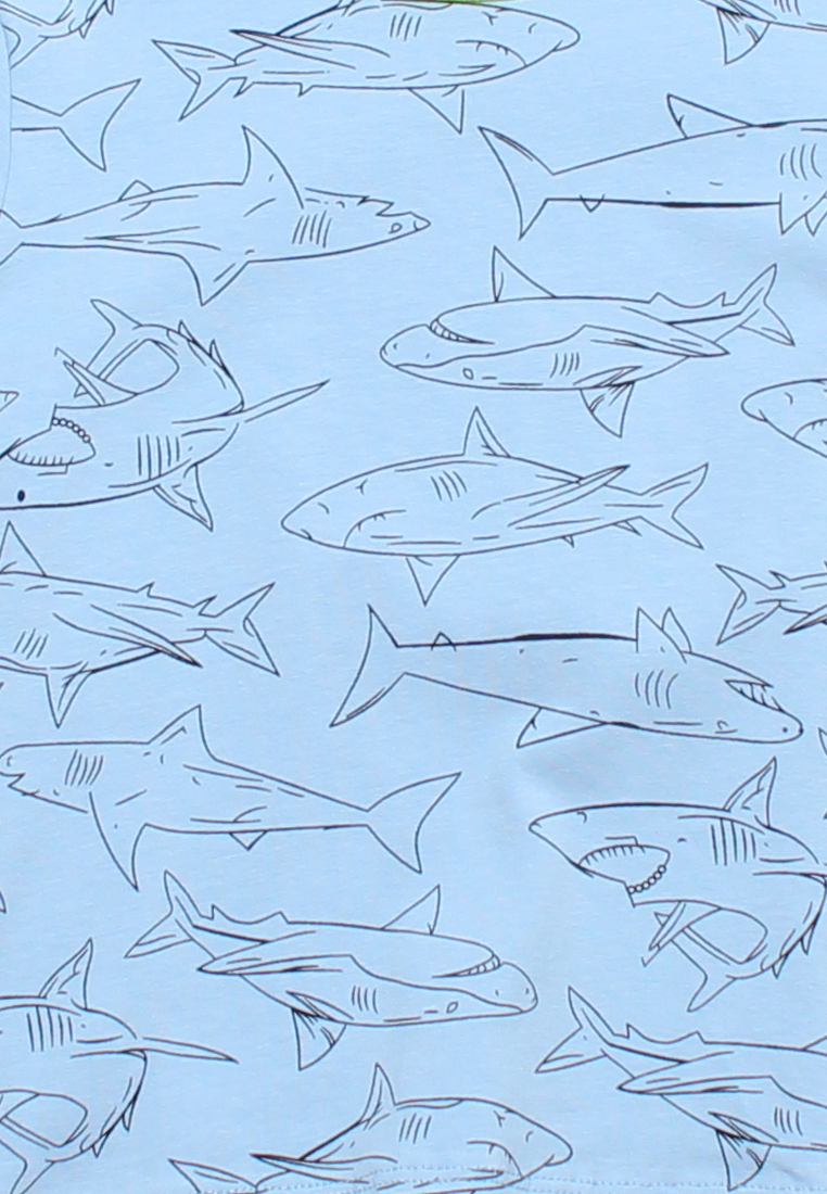- 100% premium cotton blue T-shirt with shark prints.